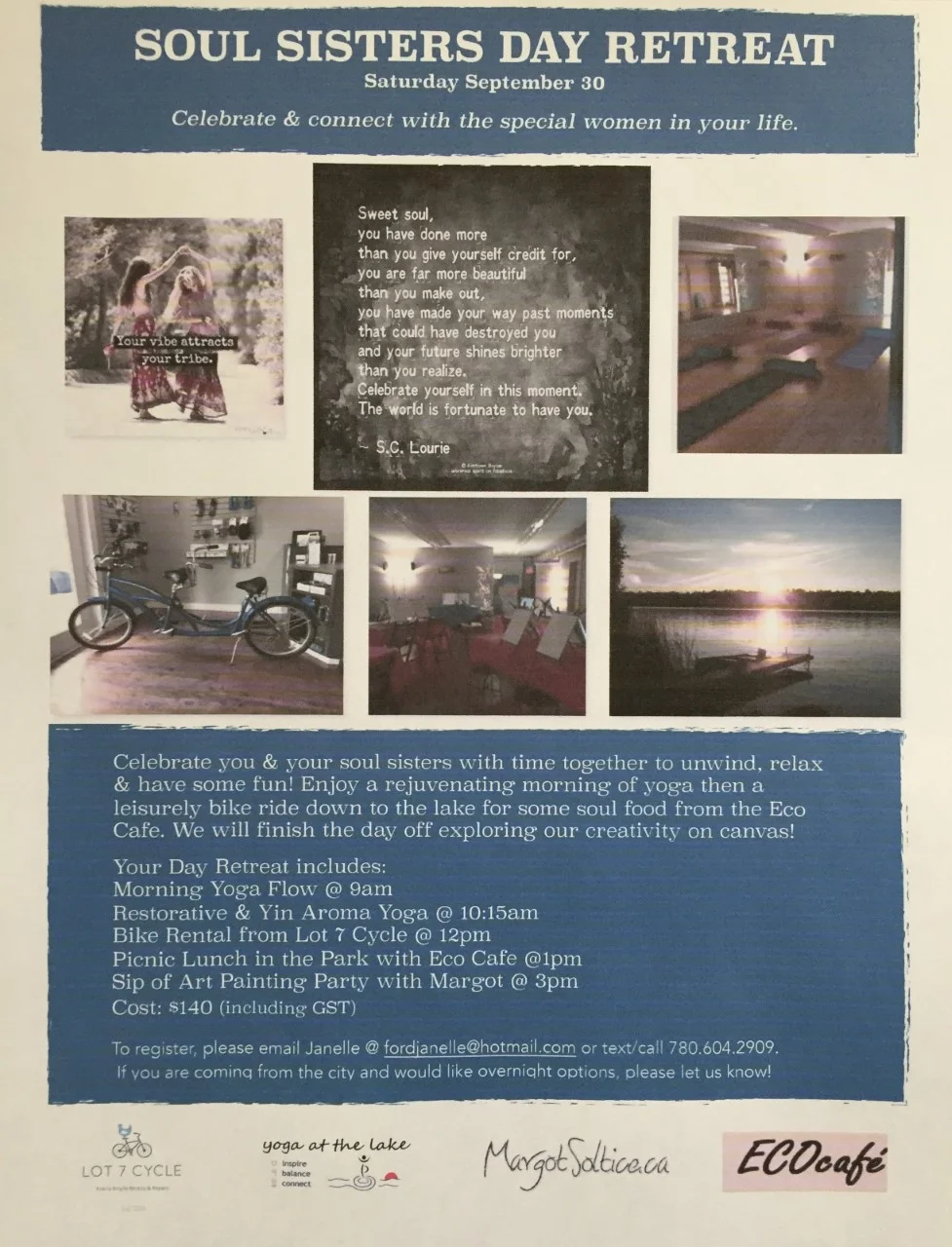 Facebook Page: yoga at the lake studio at Pigeon Lake